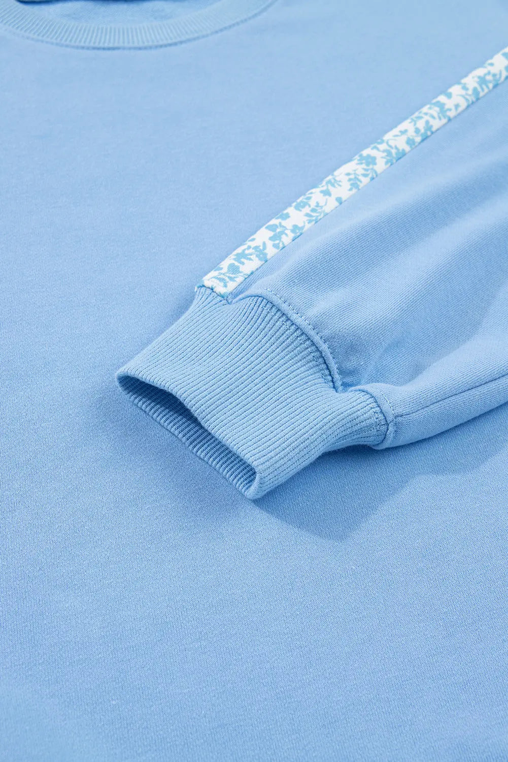 Beau Blue Floral Patchwork Drop Shoulder Pullover and Sweatpants Lounge Set