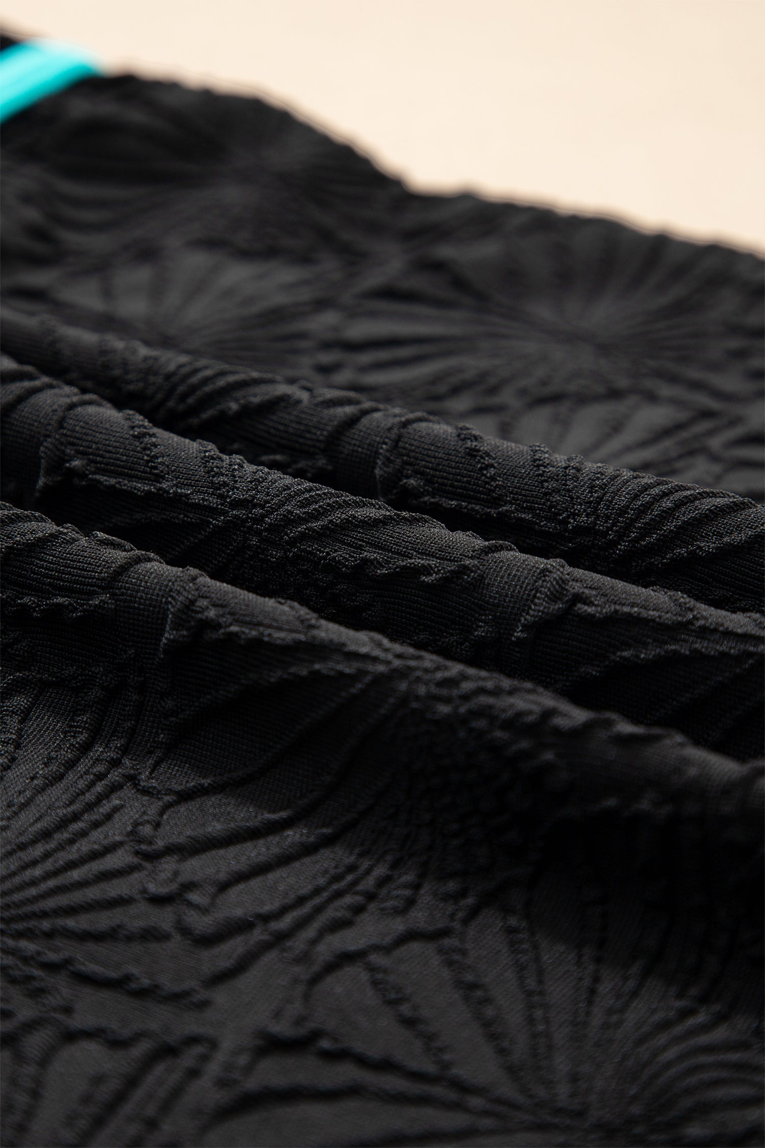 Black Floral Textured Neon Trim V Neck Crisscross Backless Tankini Set