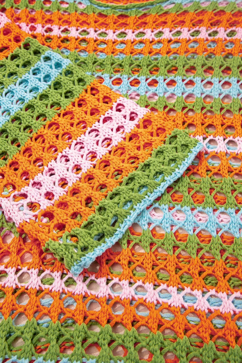 Carrot Multi Stripe Open Knit Sweater Beach Cover Up