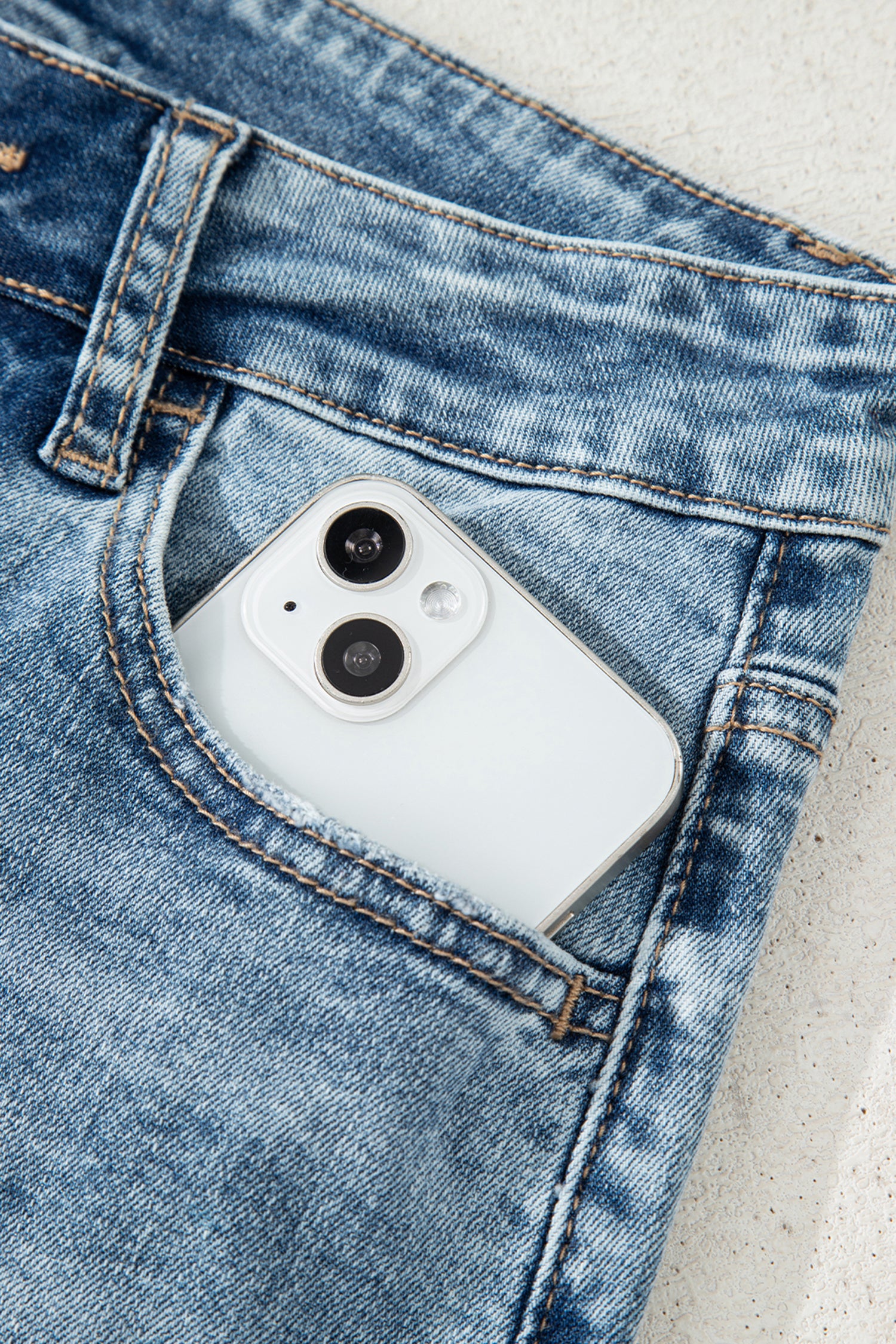 - The raw hem and ripped legs design showcase a fashionable streetwear style.