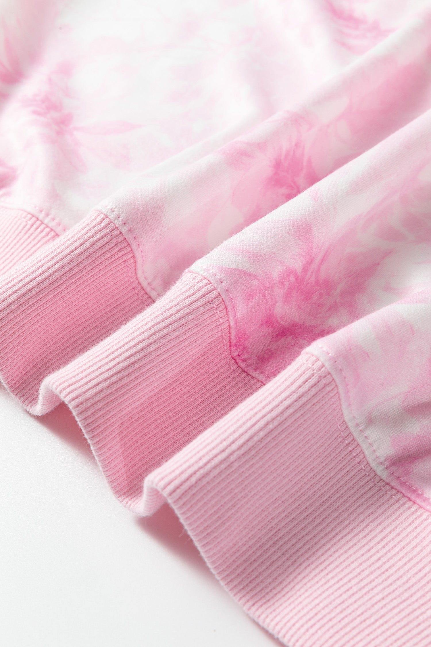 Pink Abstract Woodland Print Asymmetric Shoulder Long Sleeve Top