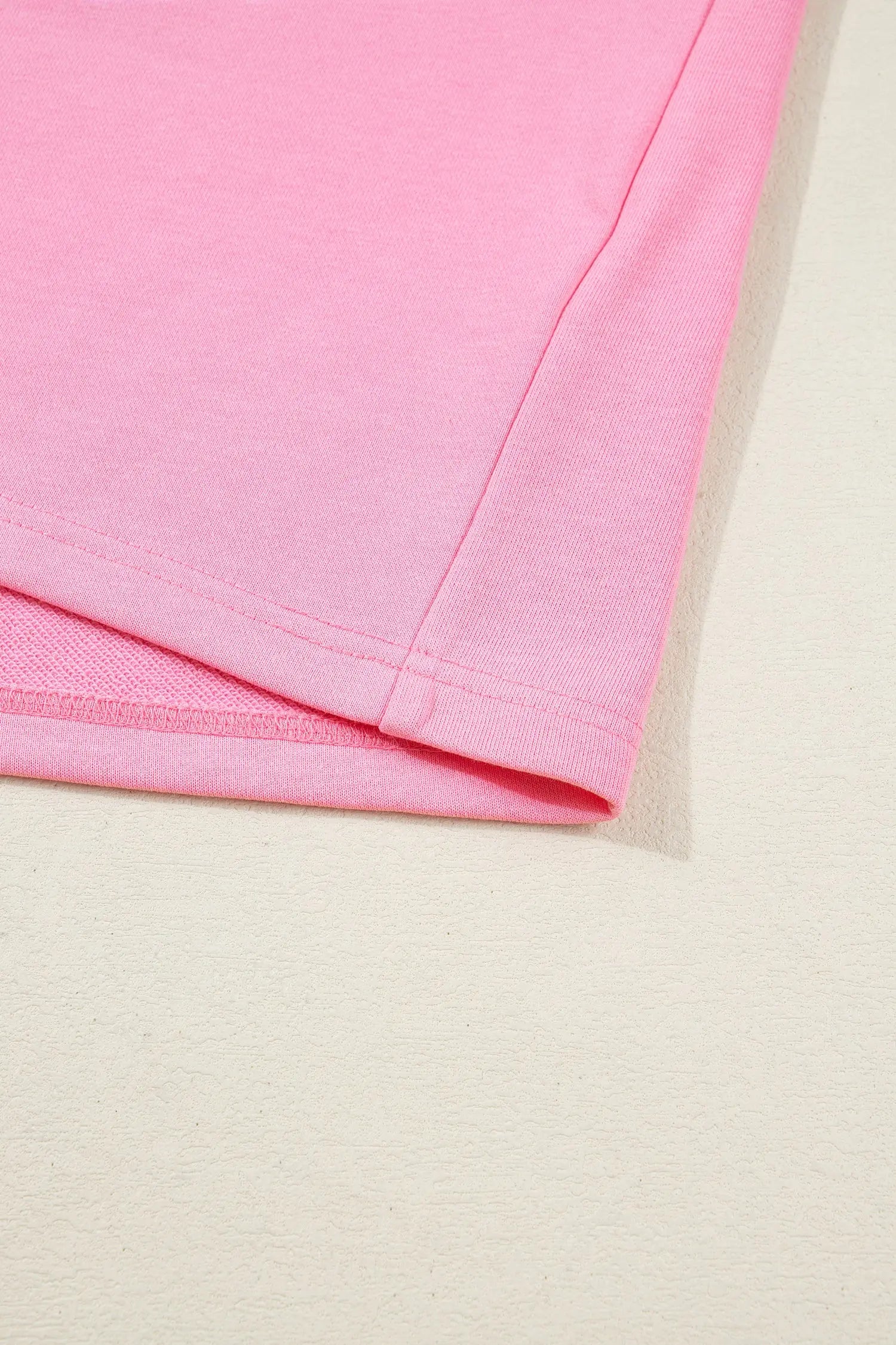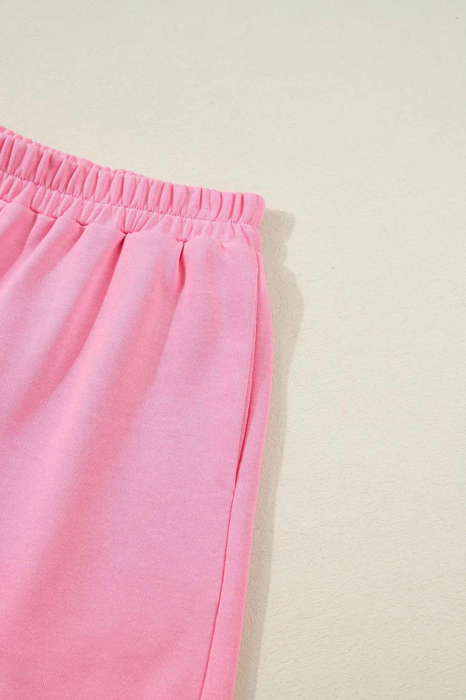 Sachet Pink Plaid Contrasted Double Christmas Tree Patched Raglan Sleeve Pullover 2pcs Short Set