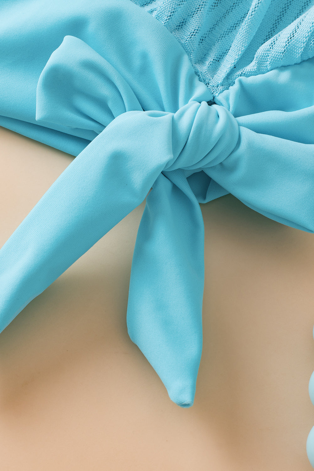 Turquoise Striped Mesh Knotted Hem Tankini Swimsuit